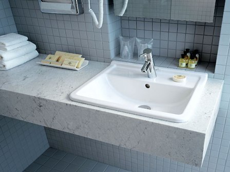 他の洗面ボウルと違う点は、カウンターへの水こぼれを防ぐ