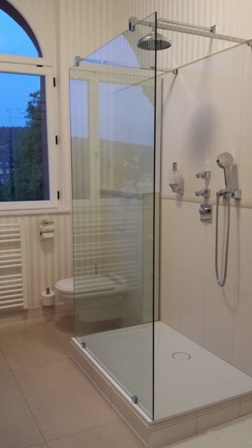 入って右側にシャワーブース、その奥にトイレ、