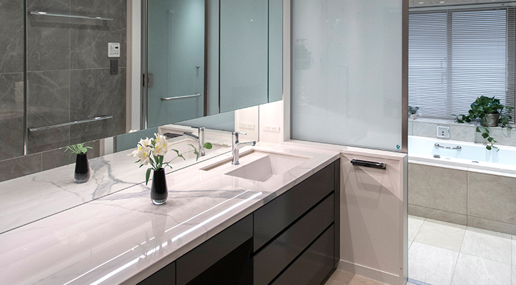 上質なものを提供したい、お施主様のそんな想いから、水まわり空間にはデザイン性にも優れたセラトレーディングの商品を採用した。