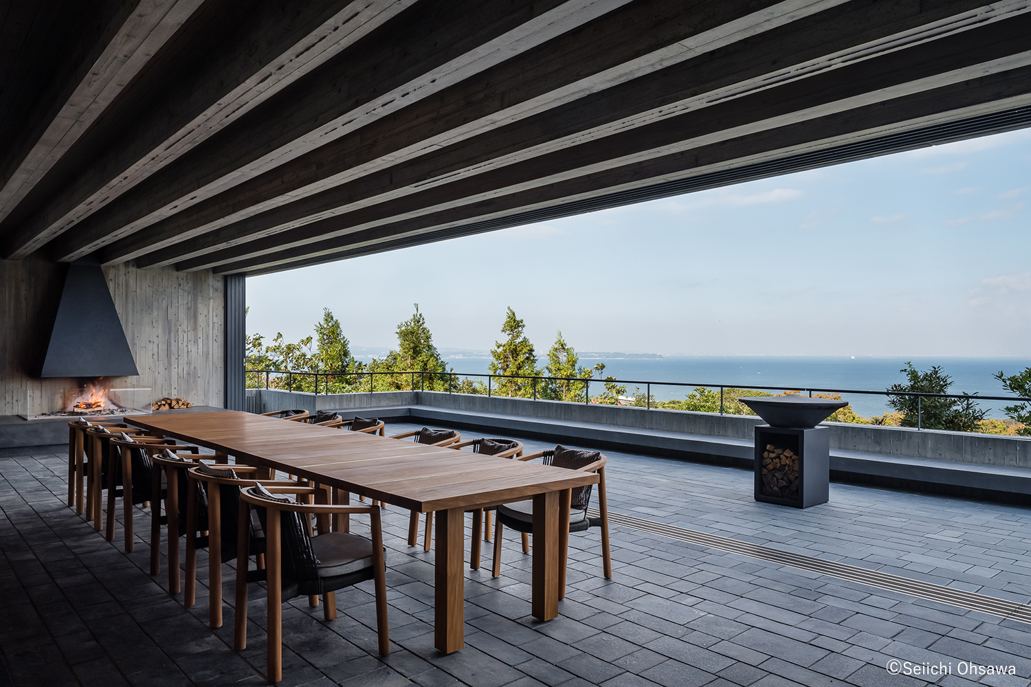 本計画は山の頂上に位置し、周囲を海と山と空に360゚囲われた場所に建つ、別荘兼一棟貸しの宿泊施設である。