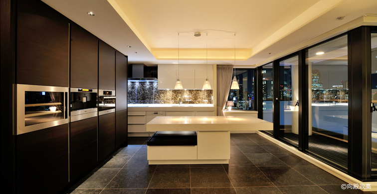 インテリアは「上質感」と「全体のバランス」を考慮し、一流の設備やインポート家具など、あえてひとつのブランドに統一せずこの部屋にマッチするものを選んだ。