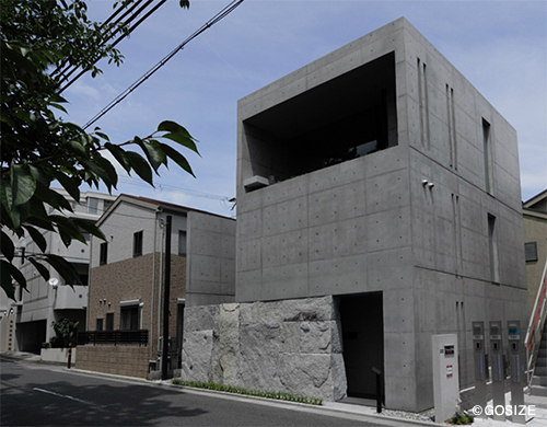 外観はコンクリート打放し。シンプルでありながら、重厚感と存在感のある静かな佇まいをつくりたいと考えた。