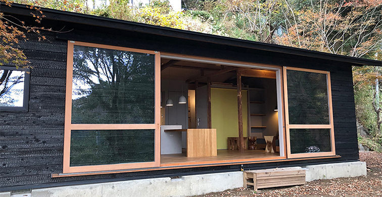 緑に囲まれた高台、相模湾が一望できるロケーションに一目惚れ。約70m²の木造住宅の構造フレームを活かしつつ、耐震・断熱性能等の基本性能を十分に上げるべくフルリノベーションを行った。