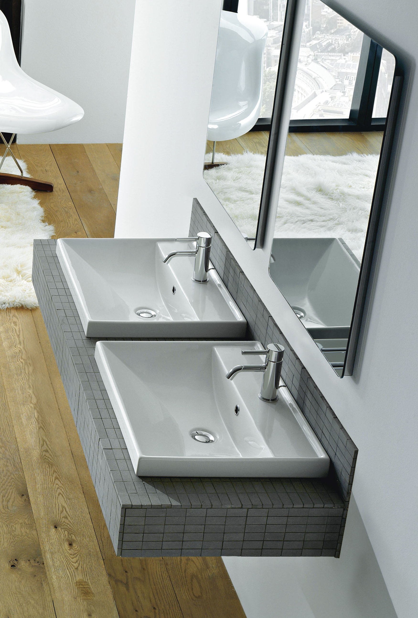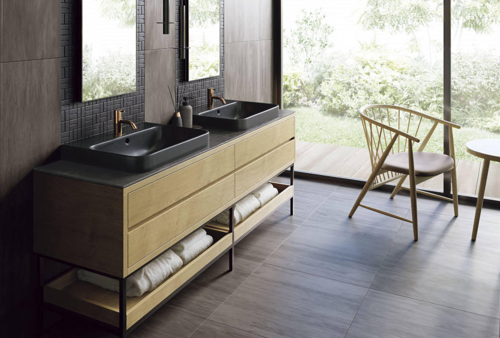 1-2. 洗面ボウルの選び方:ダブルボウル or ワイドな洗面ボウル+2つの水栓