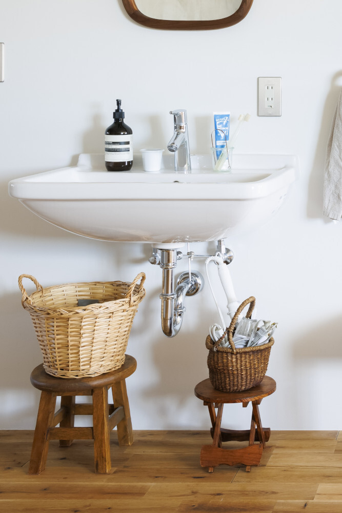 配管もインテリアの一部として考えるのが、おしゃれな洗面所を作るコツです。