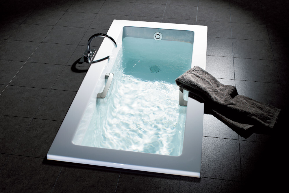 ホテルのスイートルームなどで目にする洋バスは、和バスに比べて「浅く、長い」フォルムが特徴です。ここでの主役は、重力からの解放です。