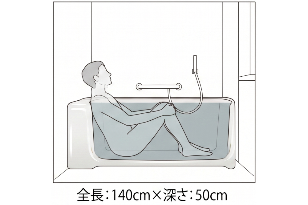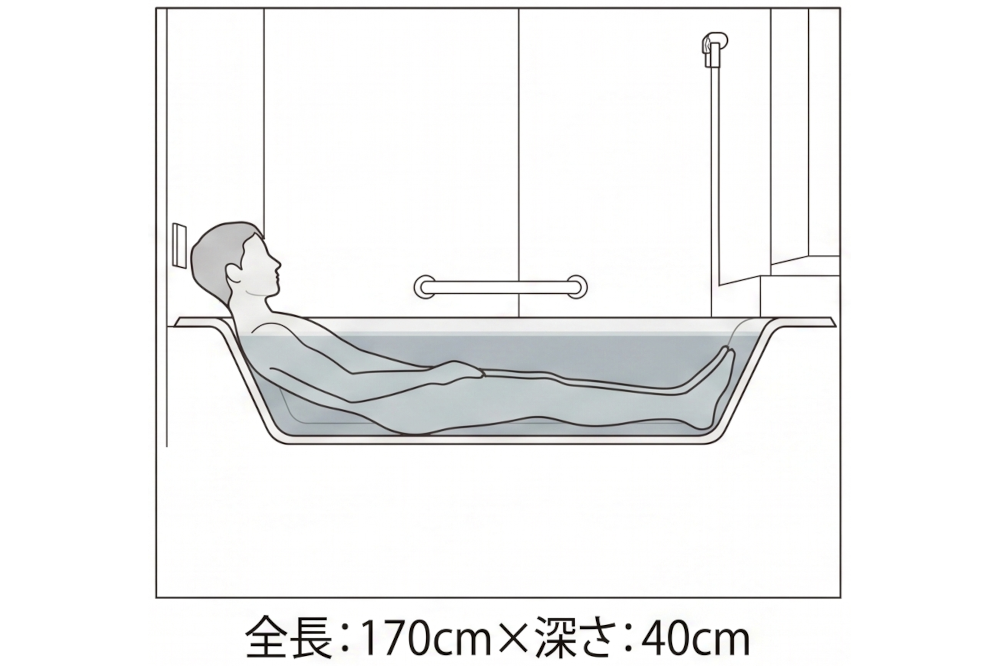 ・ハイブリッドな入浴体験: 足をある程度伸ばしつつ、肩までお湯に浸かることもできる設計です。家族の中で「しっかり浸かりたい派」と「ゆったり寛ぎたい派」が分かれる場合、ひとつの浴槽で対応できるのが最大のメリットです。