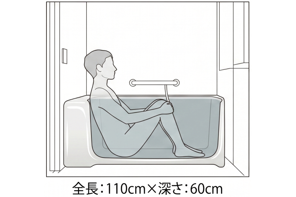 ・厳密な水位設計: 通常、浴槽自体の深さは60cm前後に設定されています。あえて膝を曲げて座る姿勢をとることで、首元までしっかりお湯に浸かる設計になっています。