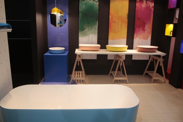 今回は鮮やかなカラーの洗面ボウルやバスタブの展示が目立ちました。