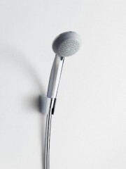 今回は2012年春の新商品、ハンスグローエ社のクロメッタ85の ハンドシャワーヘッドです。 品番:HG28565 幾重もの広がりのある心地よい優しい感触のノーマルと、局部集中的な強い当たりのマッサージシャワーの2段切替です。