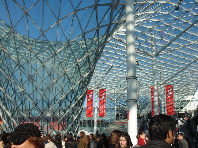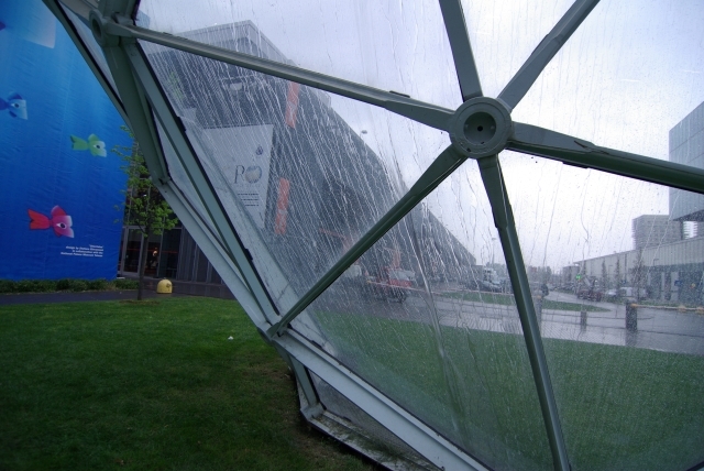 天井のガラスは非常に大きく、雨が降ったらどうなるのかと思っていたら、