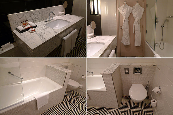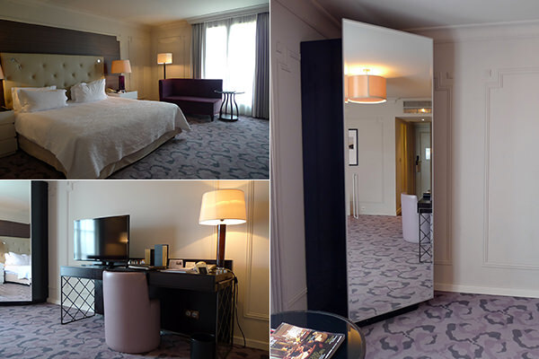 植物が四季折々の美しさをシンフォニーで奏でるようなホテルの庭園をデザインしたのは、パリのルイ・ベネック。ベネックは最近ではル・ノートルによるヴェルサイユの庭園に、300年の時を経て21世紀に相応しい「水の劇場」を復活させる等、フランスを代表する著名な造園家である。手入れの行き届いたこの庭園を挟んで、ホテルは歴史的パレスの本館と、1990年に新築されセミナー施設も整うパビリオンの2つの建物で構成される。客室は、本館にデラックスのガーデンビュー、パークビューとスイートが100室、パビリオンにクラシック、クラシックガーデンビューの99室と、全199室。泊まった部屋は高貴と権威の象徴であったロイヤルパープルのファニチャーやテキスタイルが、ブルボン王朝を偲ばせる。2泊したうちの1泊目は本館に空きがなくて、パビリオンの方になった。ウォルドルフ・アストリアといえばヒルトン系ホテルブランドでも最高級だが、例えばミニバーが壊れていて清涼飲料がまるでお湯の温度になっている等、メンテナンスがあまりよくなかったので、予約時には本館の部屋にこだわった方が無難だろう。