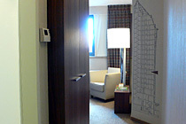 部屋にはホテルの建築断面図が壁にプリントされ、自分の部屋のレベルがマークされている。