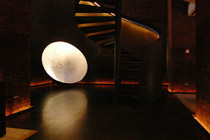 上のバー「Cave Bar」と下のラウンジを結ぶドラマチックな階段。