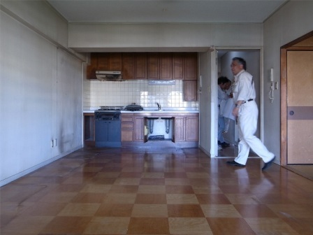 また、近隣の承認も得ないと管理組合の工事許可がおりないので、お施主さんに菓子折りを購入してもらい、近隣の挨拶回りもします。工事の際には騒音やゴミ出しなどでどうしても迷惑をかけてしまいますし、クレームを言われてしまっては工事が止まりかねず、竣工後のお施主さんの生活にも影響するので、挨拶回りは重要です。挨拶にまわる部屋は、上下隣斜めの8部屋にすることが一般的。迷惑度:下>隣=上>斜下>斜上…あたりを考慮するといいと思います。