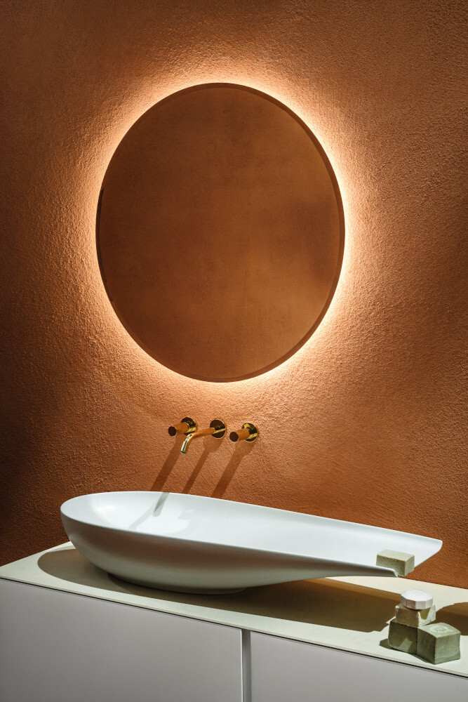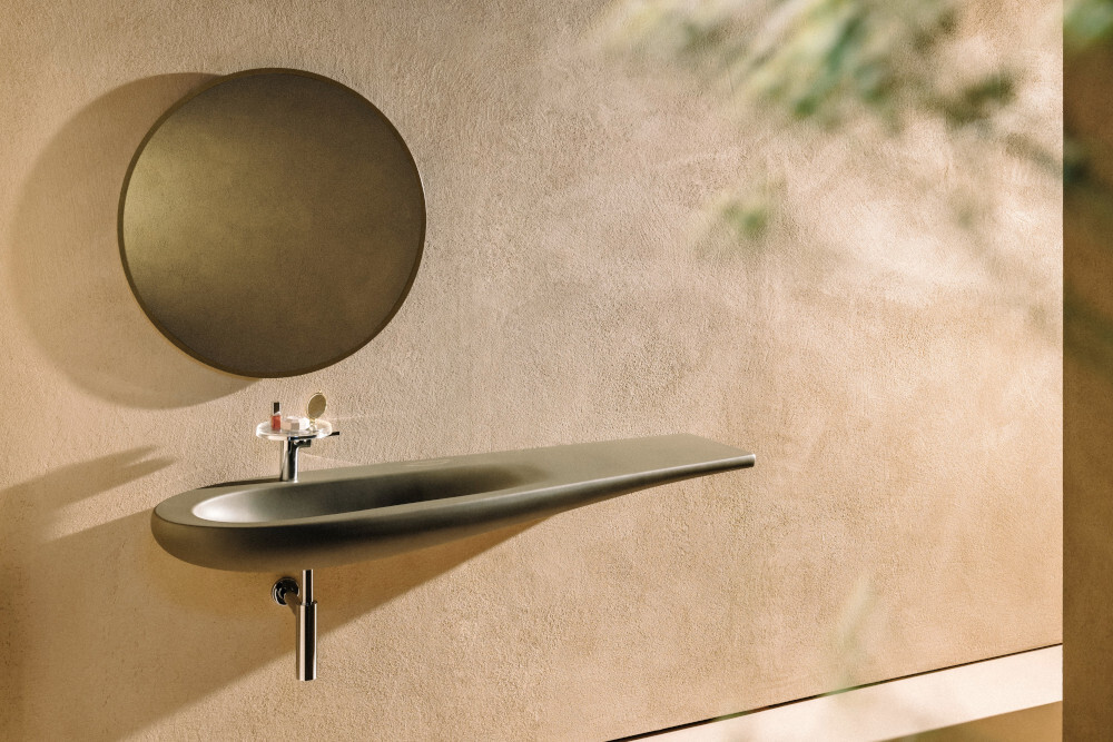 ステファノ・ジョヴァンノーニによる佇まいが美しい洗面ボウル「ILBAGNOALESSI(イルバーニョアレッシィ)」は、壁付けタイプ(1200×500mm)とベッセルタイプ(1000×380mm)の2タイプ、カラーはそれぞれホワイトマットとブラックマットを品揃えしております。いずれも水まわり空間にアートを飾るように設置でき、日々の暮らしを豊かにしてくれる洗面ボウルです。