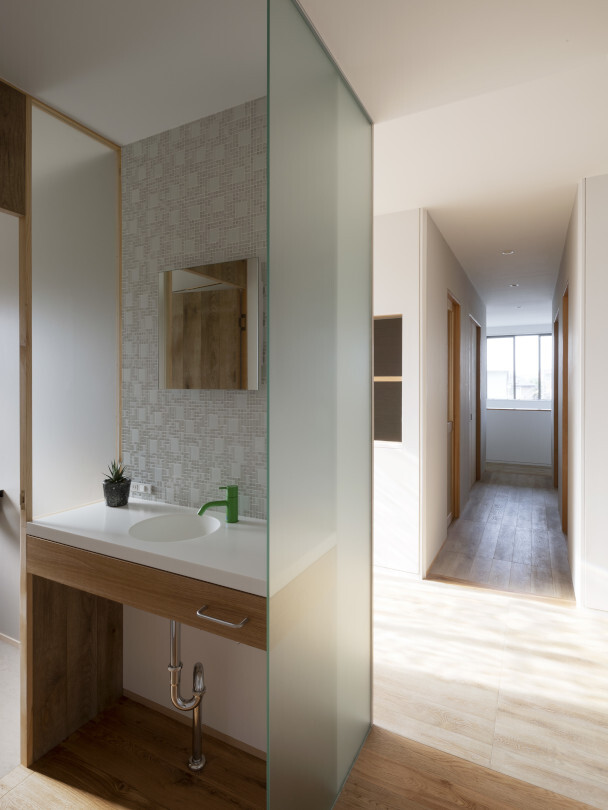 水まわり空間を広々と見せるために質感を抑え、飛行機のフラップ(下げ翼)のようなユニークなフォルムと曲線を巧みに組み合わせています。オブジェとしての美しさも持つ、完成度の高いアクセサリーです。